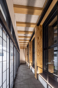 木をふんだんに使った空間は、3階の集会ホールやテラスに活かされ