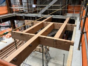 木構造部分は、構造材の加工から現場施工まで、すべてハセベの協力業者による手仕事。