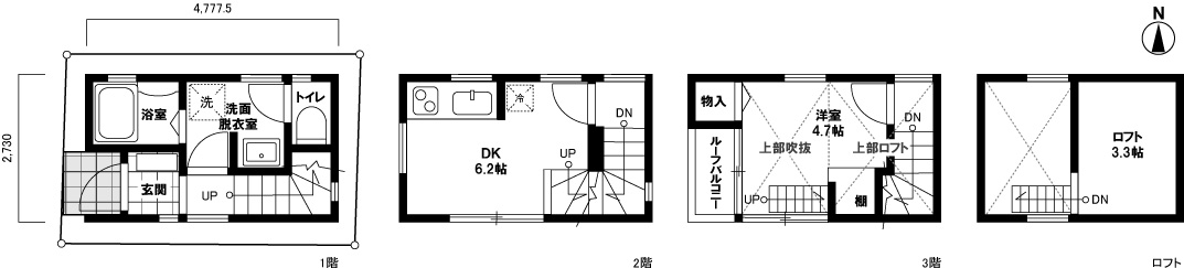 敷地面積6.2坪、延べ床面積11.5坪の都市型住宅です。