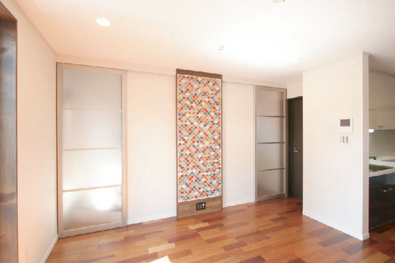 リビングのモザイクタイルが印象的なお住まい。